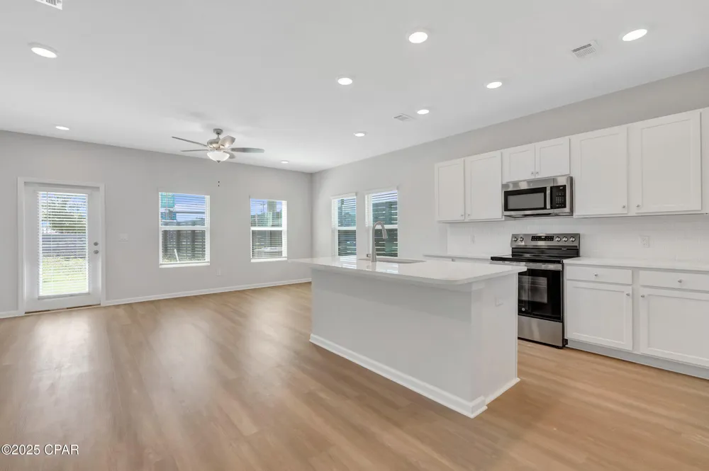 NO RENTAL RESTRICTIONS!!! Check out the open green space behind this townhome!!! Waypoint by Traton Homes, a vibrant new community of townhomes located on Front Beach Road in Panama City Beach, Florida. Waypoint offers 72 homes just under 3 miles from the beach, 1.5 miles from Dolphin Bay, and approximately 20 miles from the Northwest Florida Beaches International Airport. Residents will enjoy easy access to local attractions, with Pier Park only 7 miles away and Hathaway Bridge nearby, serving as the gateway to Panama City proper. The community is also conveniently situated near the Naval and Coast Guard bases. Each townhome features 3 or 4 bedrooms, including a bedroom with a full bath on the main level. The open concept living space includes a modern kitchen with an island, a dining area, and a family room that opens to a private back patio. Upstairs, the spacious owner's suite offers a walk-in closet, and an ensuite bath with a double vanity, a shower, and a separate water closet. Two additional bedrooms, an additional full bath, and a conveniently located laundry room complete the upper level.